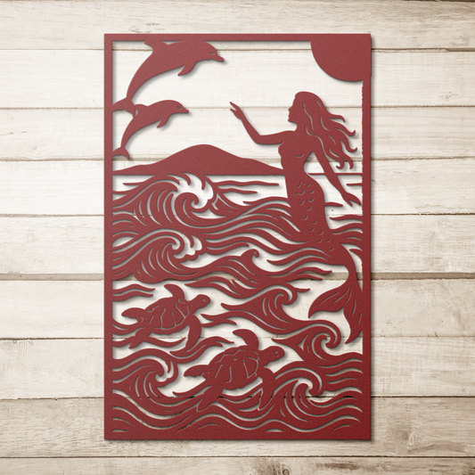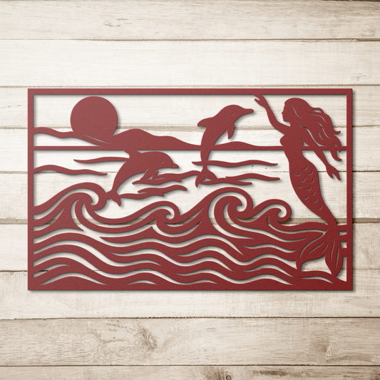 Mermaid & Dolphins Ocean Waves Metal Decor