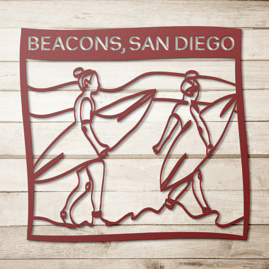 Surfing Duo Custom Text Metal Art
