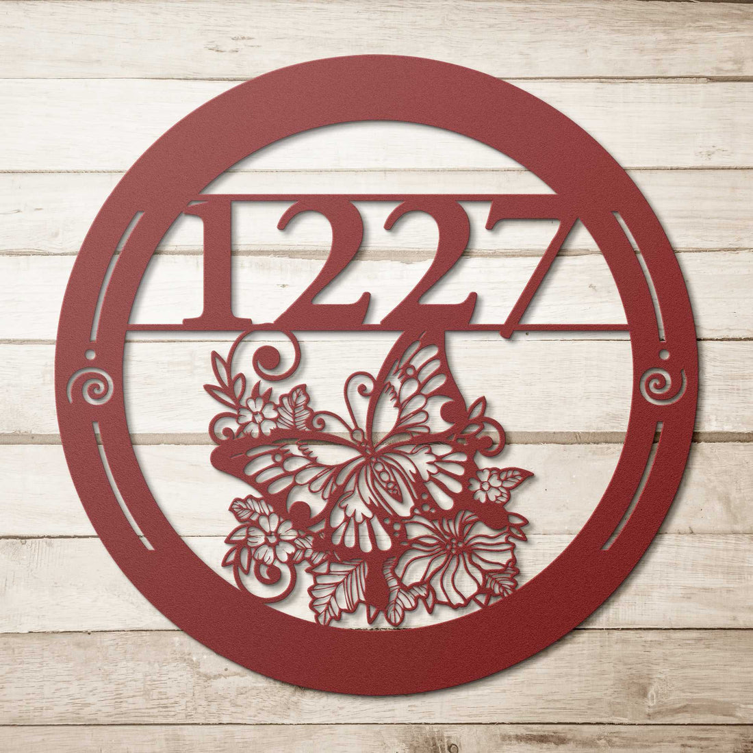 Bring a touch of charm and patriotism to your doorstep with our Butterfly Floral Address Metal Home Sign! Proudly crafted in the USA from sturdy steel, this custom-made sign brings warmth and personality to any home. Weather-resistant and powder-coated for lasting beauty, it lets you showcase your address or name with style. Easy to hang and full of heart, this sign turns your house into a truly welcoming home. Nails or screws will do the trick (mounting hardware not included). Celebrate where you live with flair and a flutter!