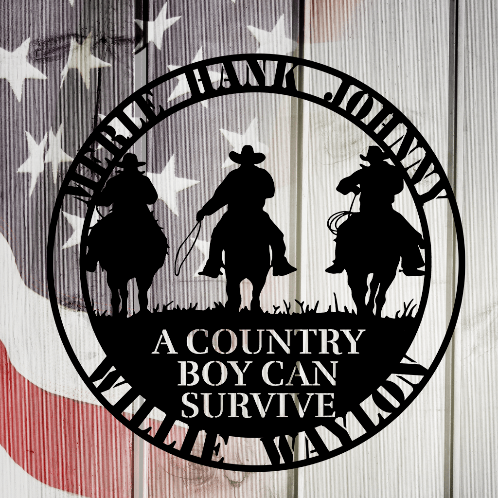 🏡 Celebrate country living with our Country Boy Can Survive: Legends Metal Wall Art—crafted just for you! 🇺🇸 America stands for the freedoms we cherish, and country pride runs deeper than that. The cowboy way is simply who we are! Add a touch of rural charm to your space with this sturdy, powder-coated piece. Make it truly yours by adding names, dates, or special messages in the center to honor family and those unforgettable farm moments. Handmade from authentic American steel by expert artisans, each design is one-of-a-kind and full of farm life spirit. Easy to hang with nails or screws (mounting hardware not included).