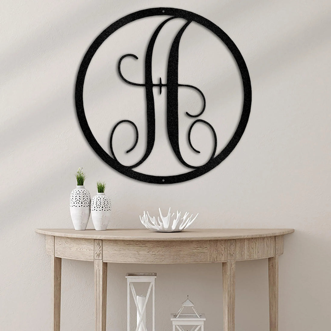 Fancy Initial Circle Monogram Metal Wall Art Home Decor
