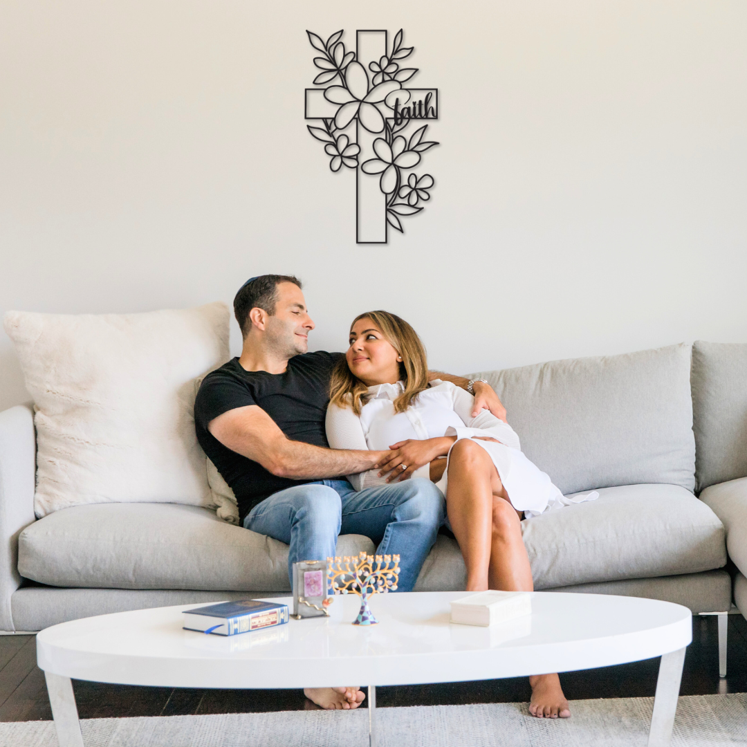This stunning Floral Faith Cross Metal Wall Art merges botanical beauty with spiritual symbolism in one striking statement piece. Delicate flowers dance around a commanding cross, creating a design that whispers grace while standing bold and proud. Crafted from American steel with a protective powder coating, it laughs in the face of weather—whether you're hanging it in your entryway, bedroom, porch, or prayer space. No fuss assembly means it's ready to inspire the moment it arrives. Choose from multiple sizes and finishes to match your style, and you've got the perfect gift for baptisms, milestones, memorials, or anyone who needs a daily dose of hope. Handmade in the USA with the kind of care that shows.