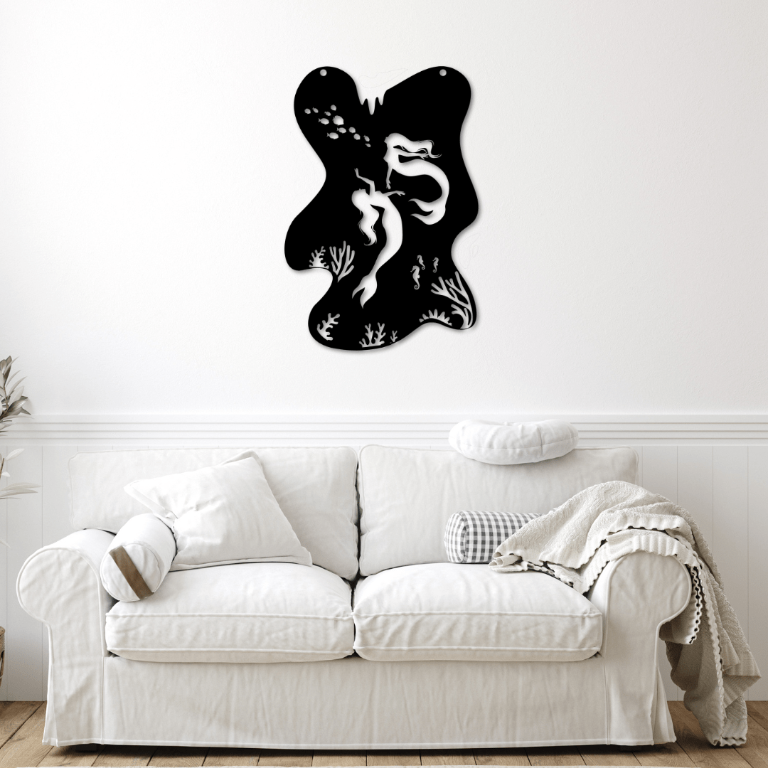 Immerse yourself in coastal enchantment with our charming Mermaid Dreams Metal Wall Art! Showcasing two elegant mermaids surrounded by coral, seahorses, and fish, this piece beautifully brings ocean magic to life. Crafted from authentic American steel and coated with a weatherproof powder finish, it’s designed to dazzle both indoors and outdoors—no rust, no fading, just endless marine charm. Why you’ll adore it: super easy to hang with just a few nails or screws. Perfect for beachside homes, seaside escapes, or anyone who adores the sea. Mounting hardware sold separately.