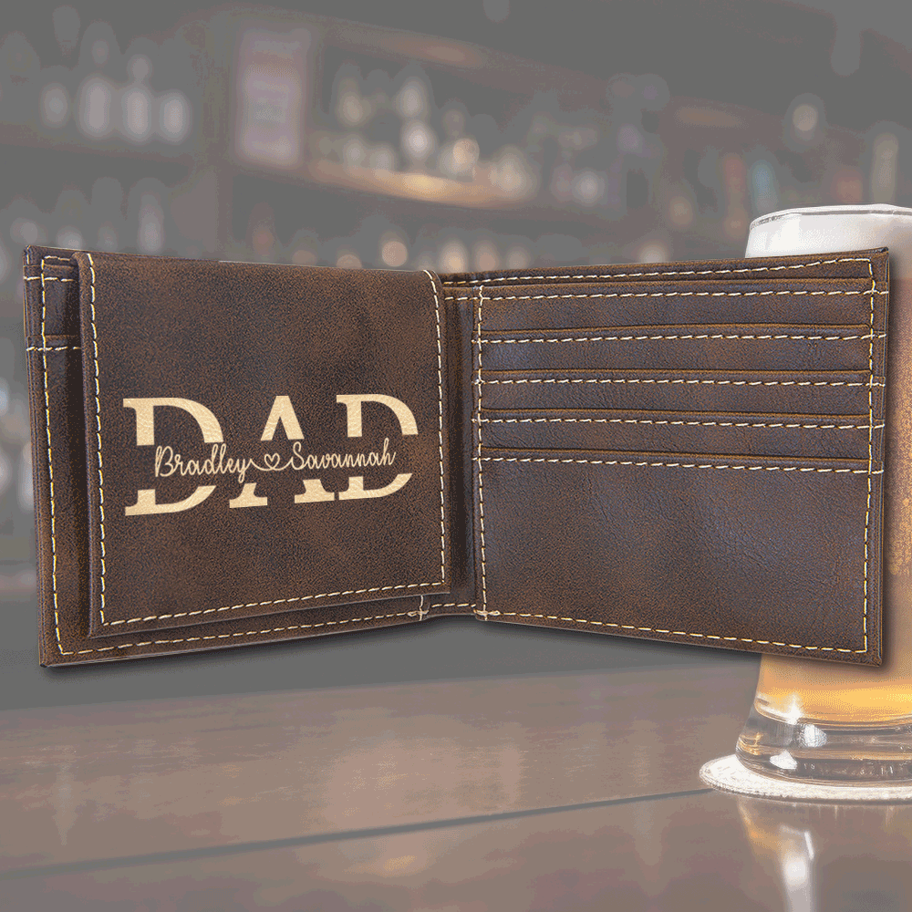 Premium Leather Bifold Wallet - Dad Split Name