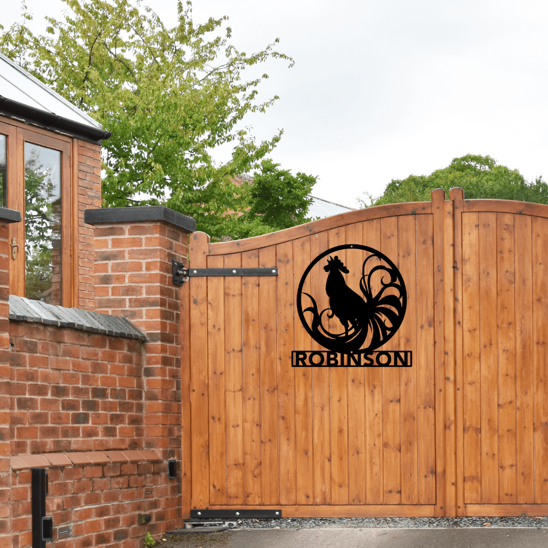 Give your home's exterior a fun upgrade with our custom metal address signs that highlight your unique style. Crafting your own spirited sign is a breeze, and once it’s up, it adds a lively flair to your outdoor decor. Meet the Rowdy Rooster Address Circle Sign—proudly made in the USA from tough American steel ready to brave any weather. These sturdy, powder-coated signs are customizable with your name or address, bringing a dash of charm and personality to your doorstep. Each sign is lovingly handmade by skilled artisans, making every piece one-of-a-kind. Easy to install with nails or screws (mounting hardware not included), this sign is the perfect blend of function and flair to boost your curb appeal. Let’s make your home stand out with a rooster that’s ready to ruffle some feathers!