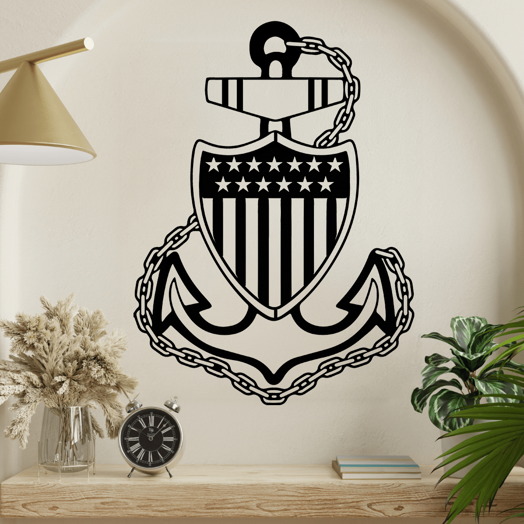 Celebrate the symbol of strength and teamwork with the USCG Stability Anchor. This Chief Petty Officer’s emblem showcases an anchor for steadfastness and a chain for unbreakable bonds. Crafted from genuine American steel and powder-coated for durability, it’s a fun and heartfelt way to honor our heroes. Perfect for adding a custom touch to your home, it’s ready to hang (just bring your own nails or screws). Show your pride and respect with this unique metal wall art made by skilled artisans for those who serve!